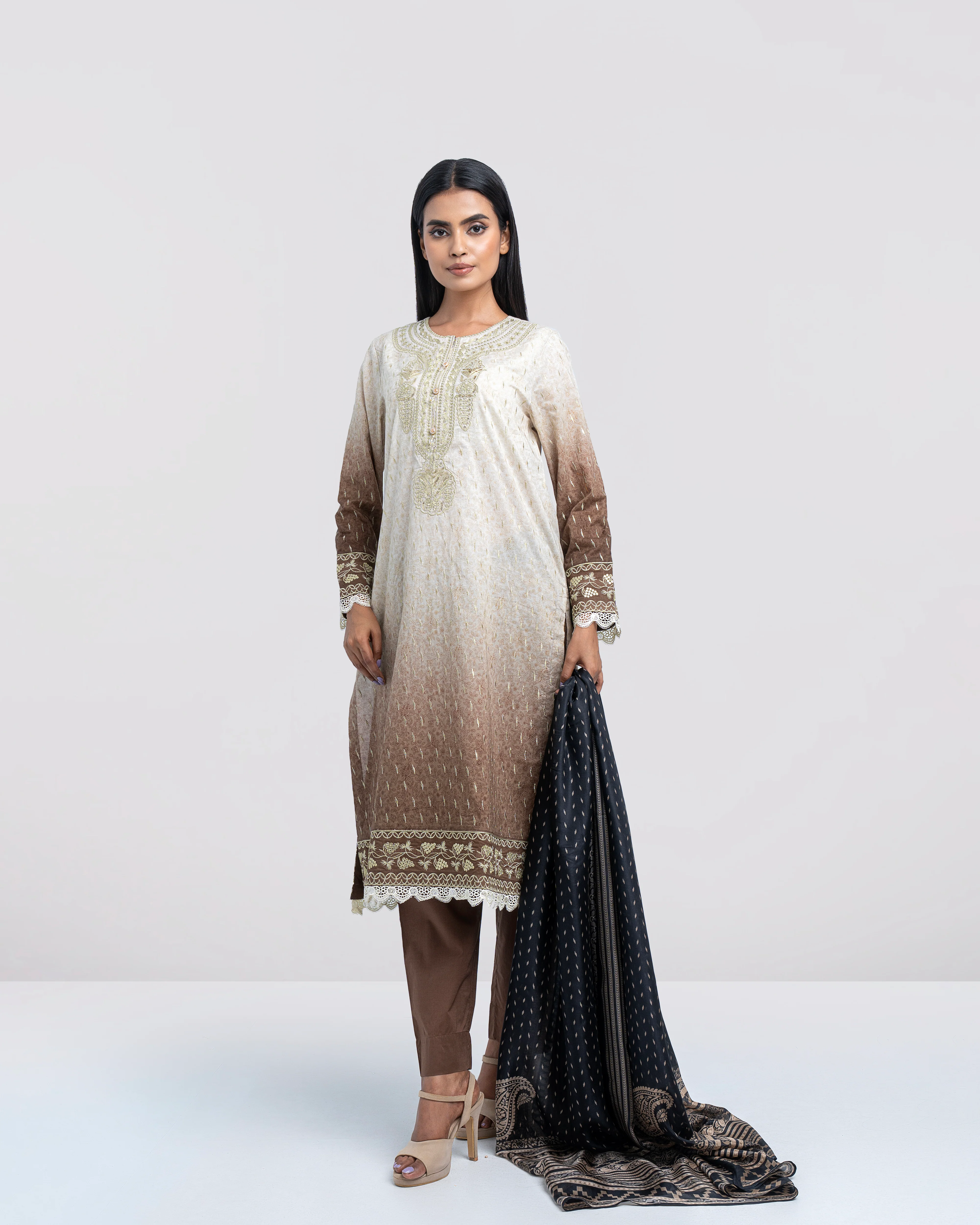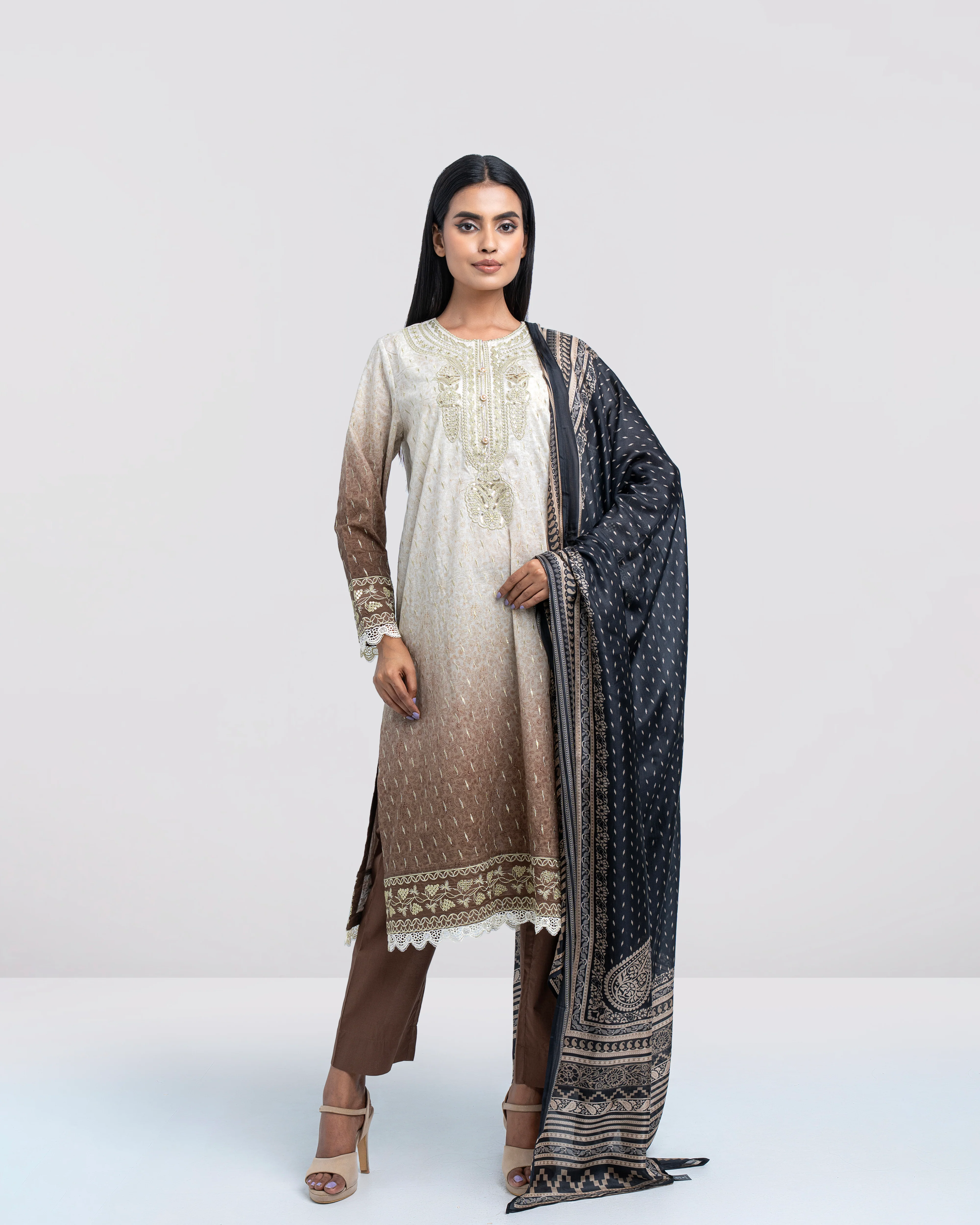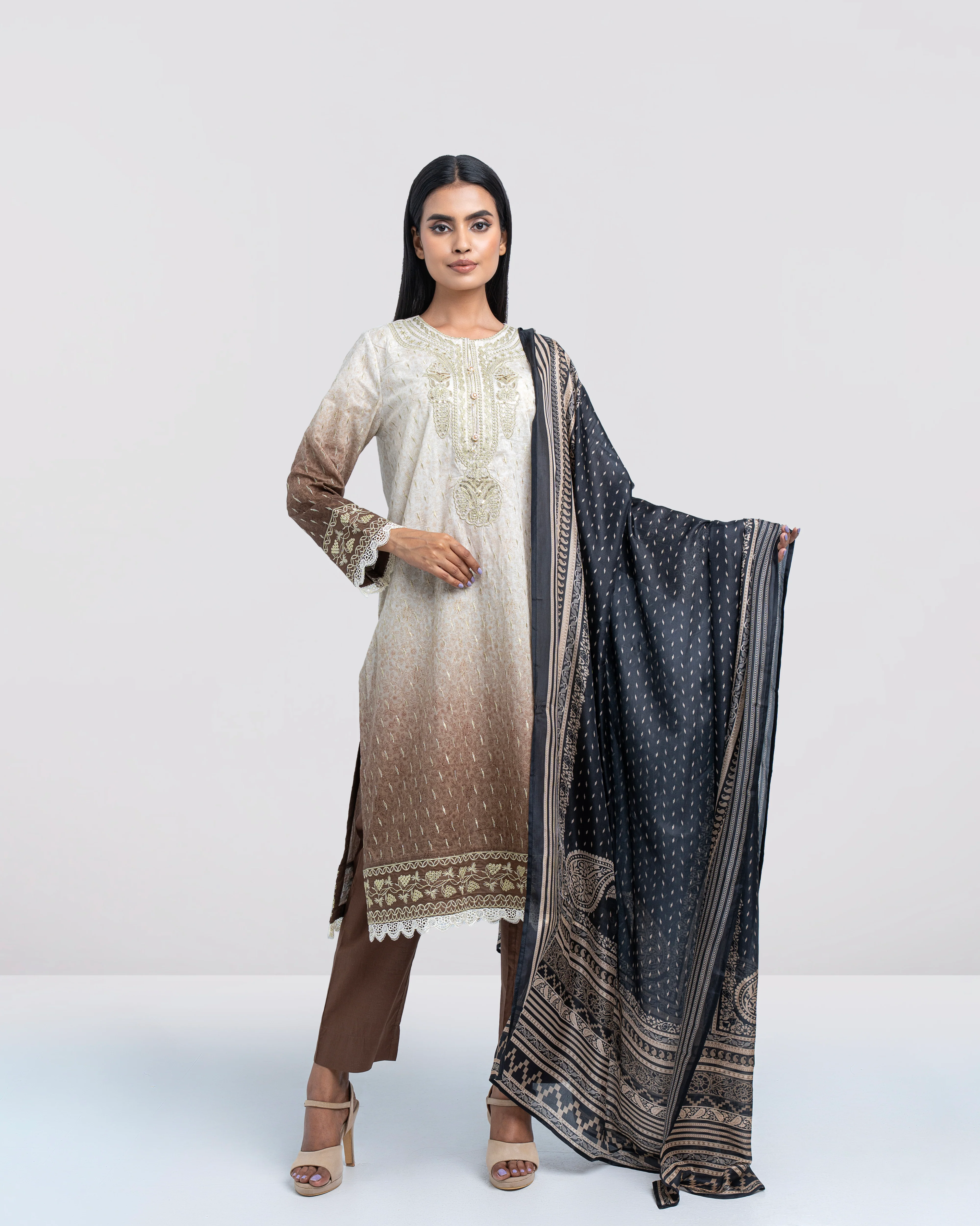 Smart Fit Digital Printed Three-Piece Lawn with Silk Dupatta